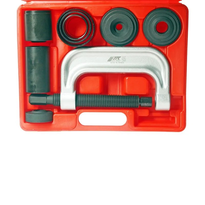 - The set contains heavy-duty C frame press, receiver tubes, installation and removal adapters.