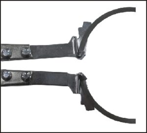Tapered jaws to remove and install most passenger car and light truck rings.