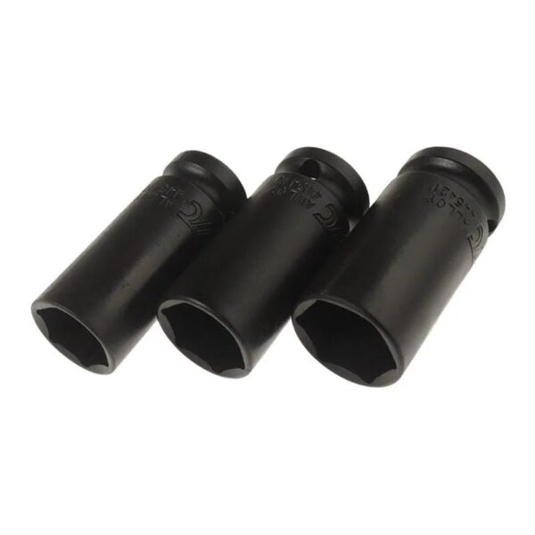 • The 1/2″ thin wall middle deep impact socket set comes with three sizes of middle deep impact sockets.