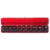 - The 1/2″ impact socket set 6 PT comes packed in a durable case.