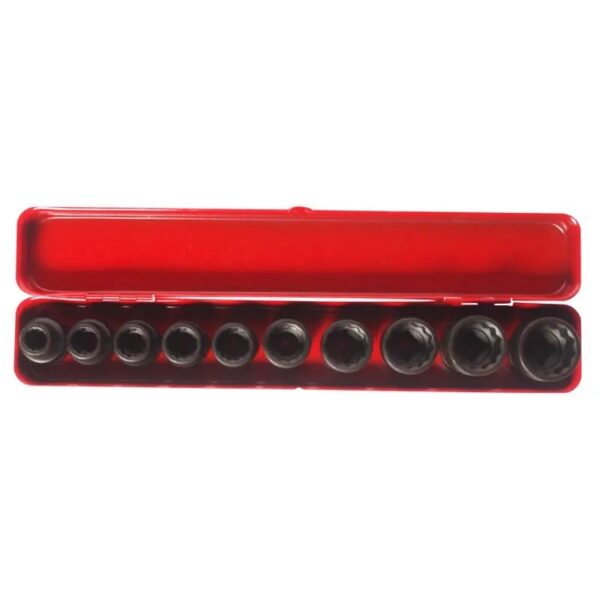 - The impact socket set 12 PT comes packed in a durable case.