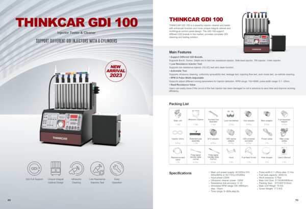 THINKCAR GDI 100 is a powerful injector cleaner and tester with enhanced function and more unique integral cabinet and multilingual control panel design. The GDI 100 support different GDI brands in the market, provides complete GDI cleaning and testing solution.